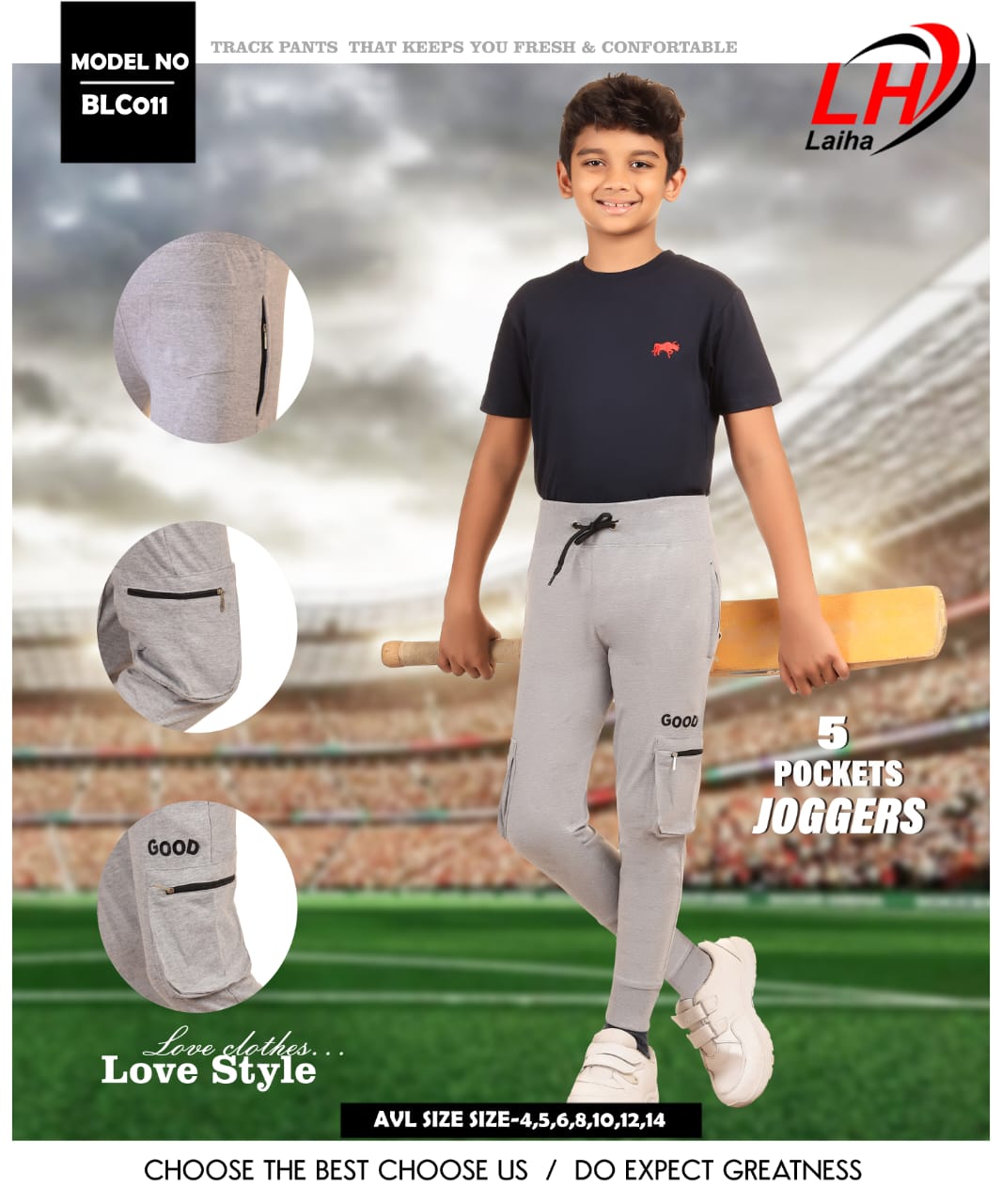 Laiha boys’ cargo pants crafted from premium fine fabric with a soft bio-wash finish, featuring a trendy 5-pocket design for a stylish and functional look.